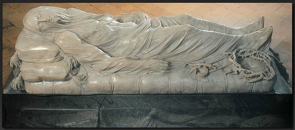 1753 yılında Giuseppe Sanmartino tarafından Örtülü-Peçeli İsa Heykeli, Napoli’deki Cappella Sansevero da sergilenmektedir. İsa’nın bedeninin üzerindeki narin ve yarı saydam örtü çok ilginçtir ve dikkat çeker.