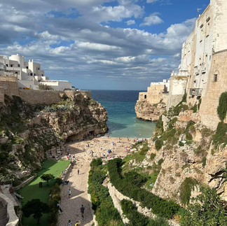 Polignano a mare, Puglia'nın en güzel sahil kasabalarından biri olan Polignano a Mare, bembeyaz evleri ve nefes kesici deniz manzaralarıyla ünlü. Şehrin sokaklarında dolaşırken, her köşebaşında karşınıza çıkan muhteşem deniz manzaraları sizi büyüleyecek. Cozze, Polignano a mare arası 17 dakika. Domenico Modugno, İtalyan şarkıcı-söz yazarı, gitarist, aktör ve politikacı. Eurovision Şarkı Yarışması'nda birçok kez İtalya'yı temsil etmiş. Aynı zamanda İtalyan Radikal Partisi'nin milletvekili ve lideriymiş. Polignano a Mare'ye gelince, göreceğiniz ilk eser olmalı.Heykel, Polignano a Mare'nin tarihi simgelerinden biri. Tüm zamanların en tanınan şarkılarından birini dünyaya armağan eden büyük şarkıcı Domenico Modugno'nun doğum yerinin anıtı. Heykelin arkasında Volare merdiveni bulunmakta. Aşağıya doğru indiğinizde açık denizlerin, meşhur Lama Monachile plajının ve kasabanın manzarasını göreceksiniz. Kesinlikle görülmeye değer.